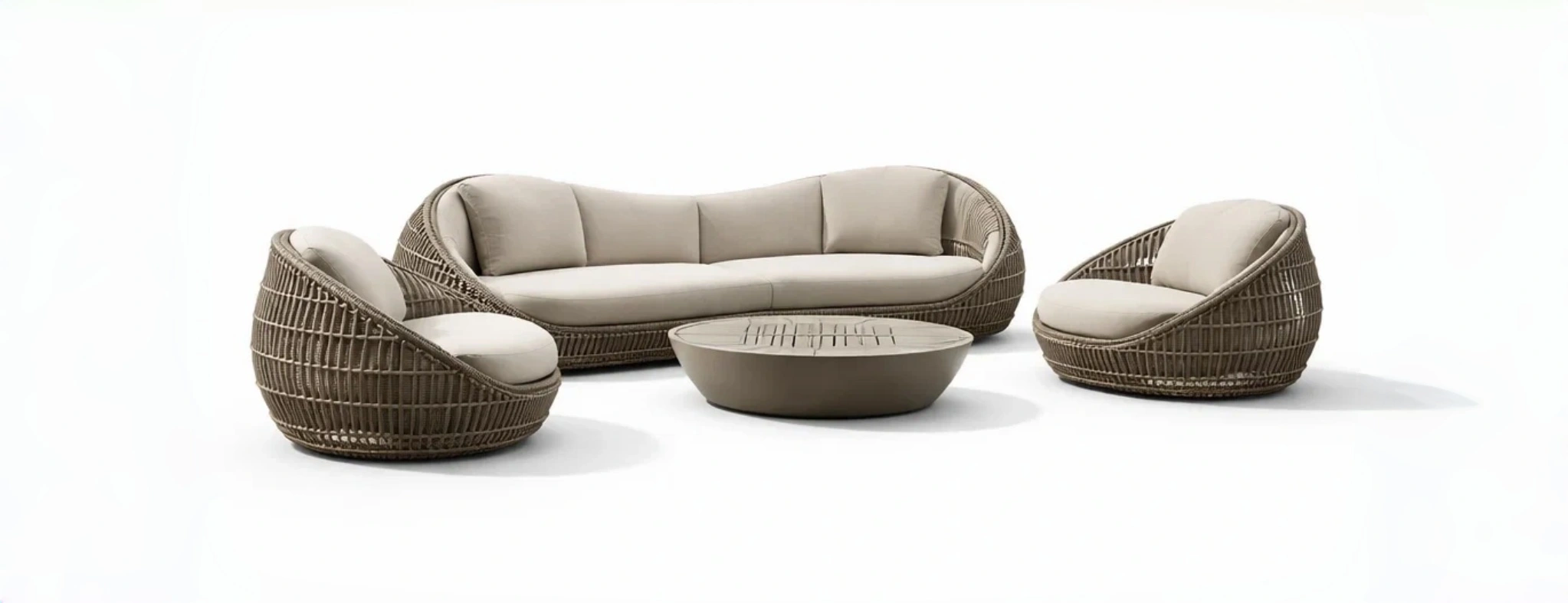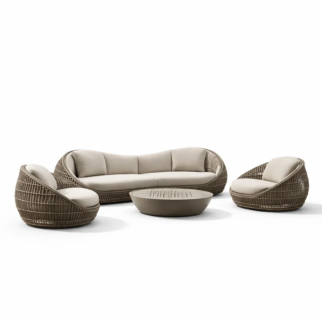 Ensemble de canapés d'angle extérieur en aluminium, bois et polypropylène beige